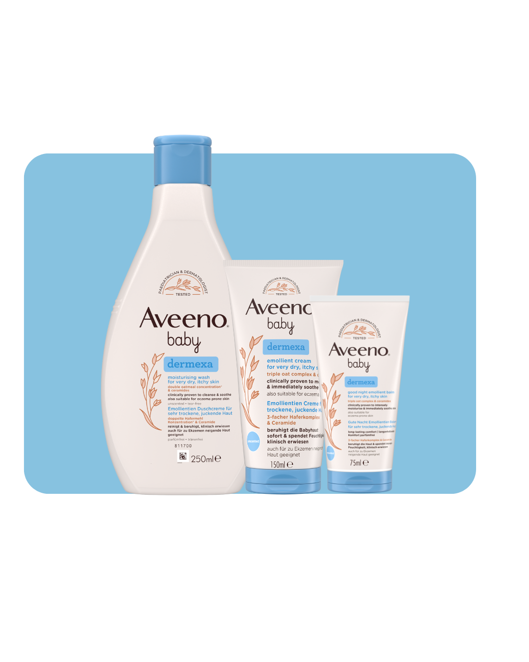 Kinderärztlich und dermatologisch getestet sind die Aveeno® Baby Produkte mit hochwertigen Haferbestandteilen formuliert, um empfindliche Babyhaut zu schützen, zu beruhigen und mit Feuchtigkeit zu versorgen.