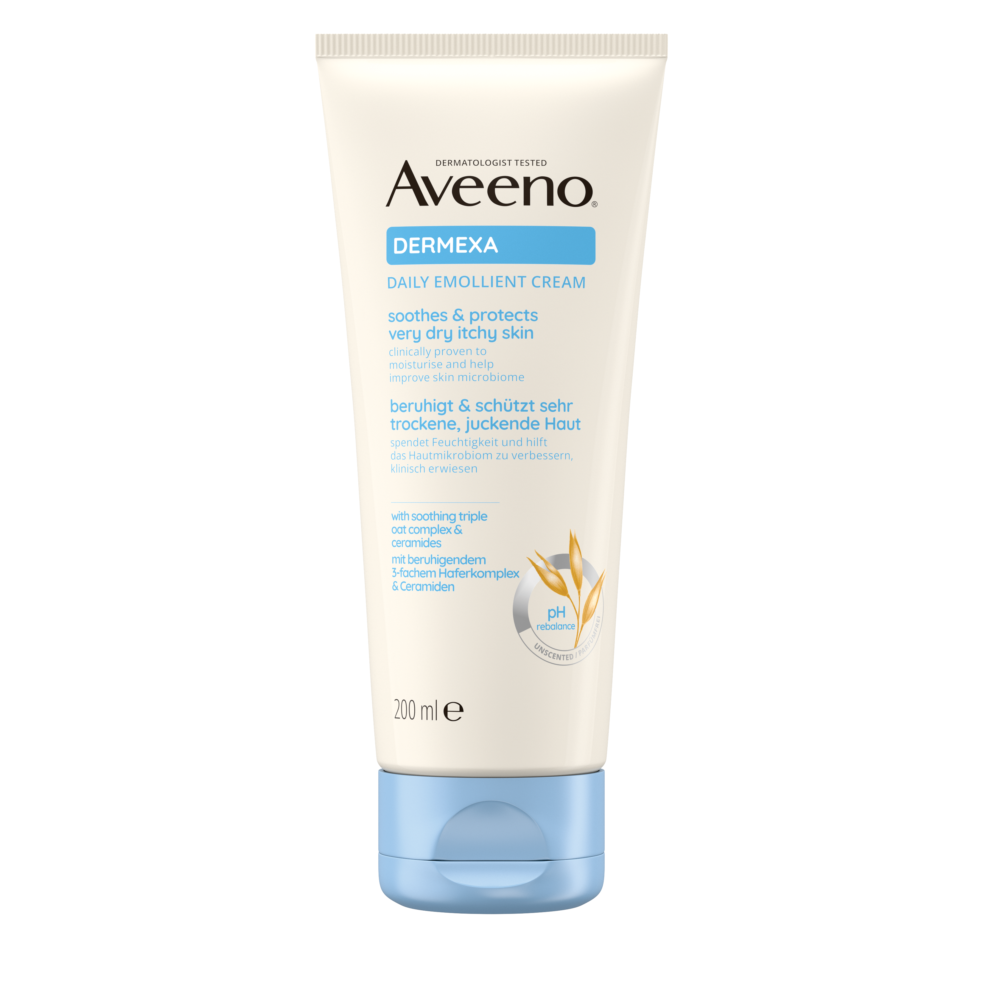 Die Körperpflegeserie Dermexa eignet sich für sehr trockene bis hin zu Ekzemen neigende Haut. Die beruhigenden Pflegeprodukte mit dem 3-fachen Haferkomplex und Ceramide helfen das Gleichgewicht des Hautmikrobioms zu verbessern.* Sie spenden intensive Feuchtigkeit und schützen sehr trockene, juckende Haut für ein angenehmes Hautgefühl.