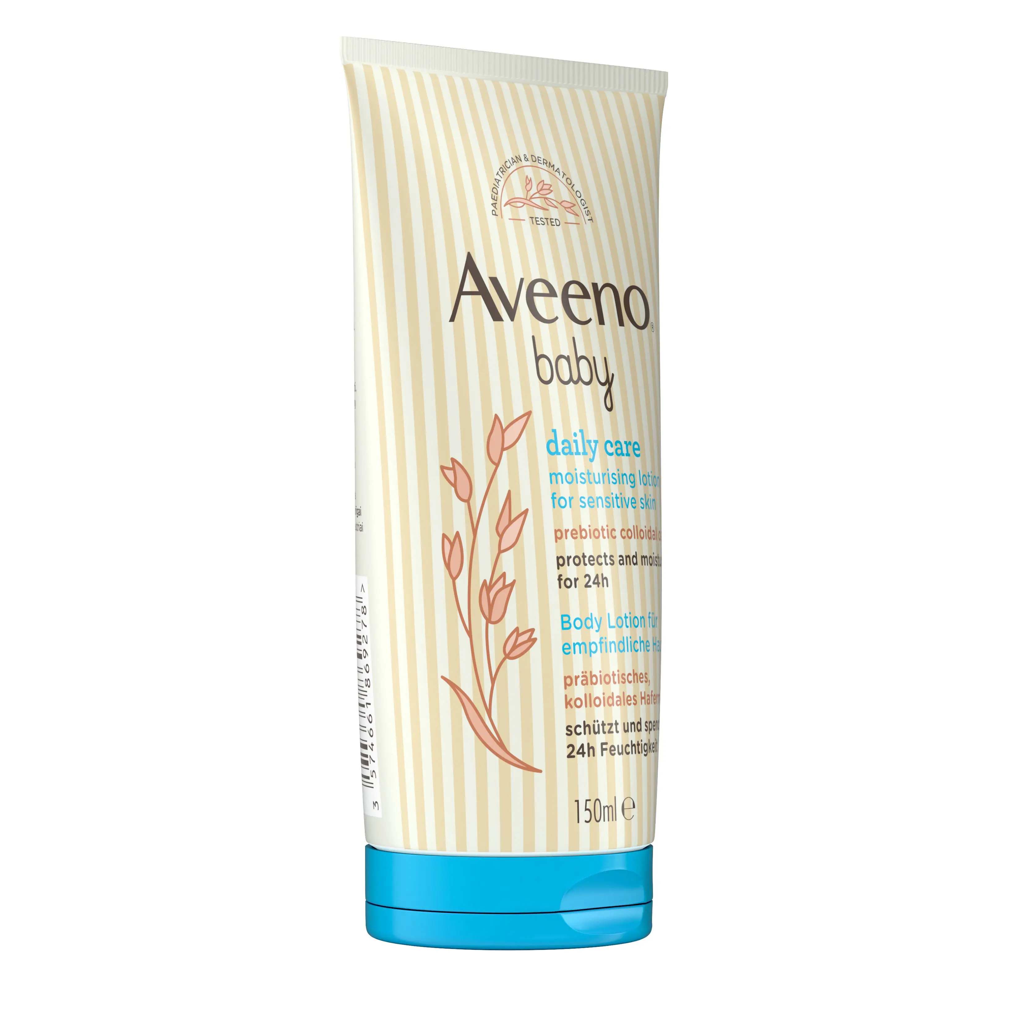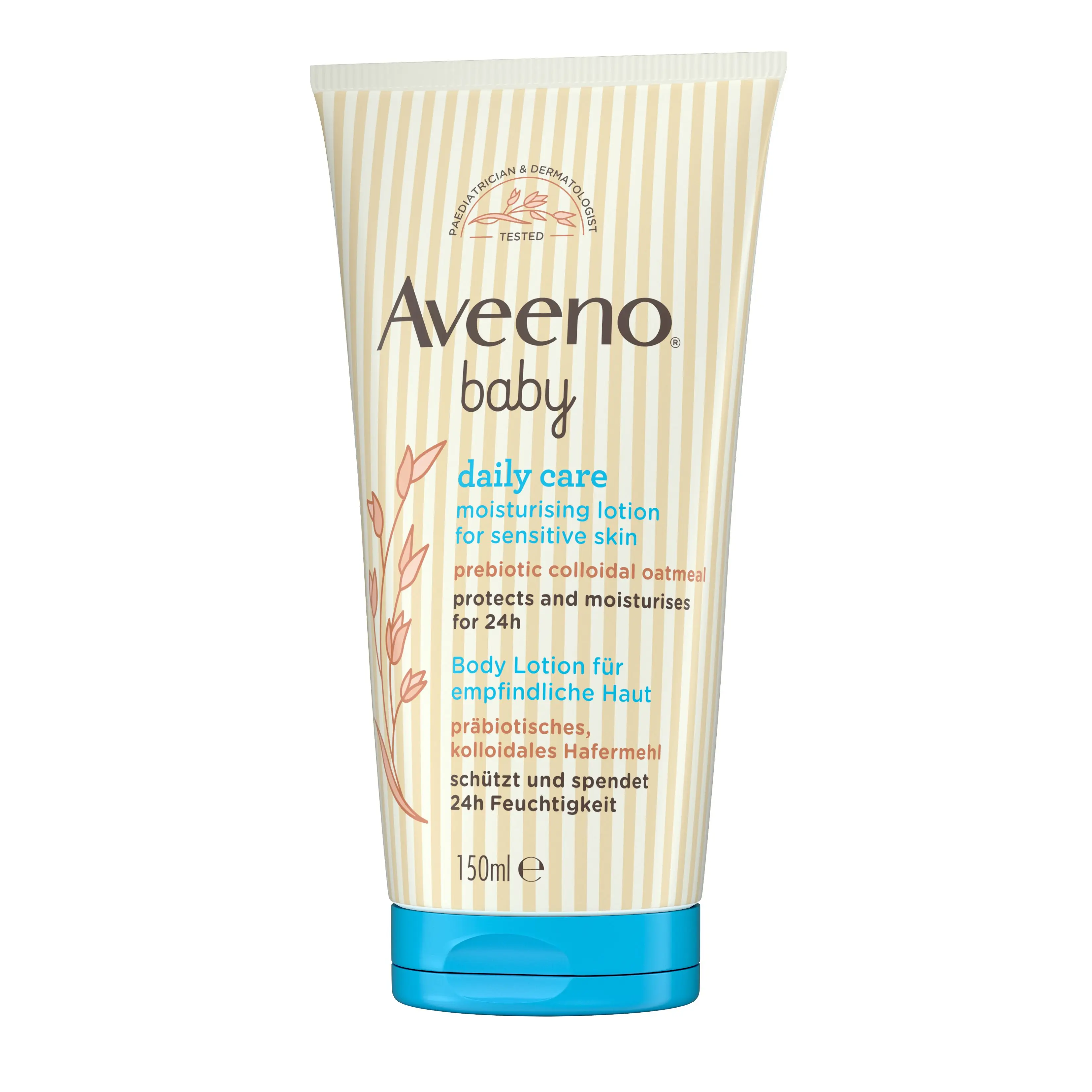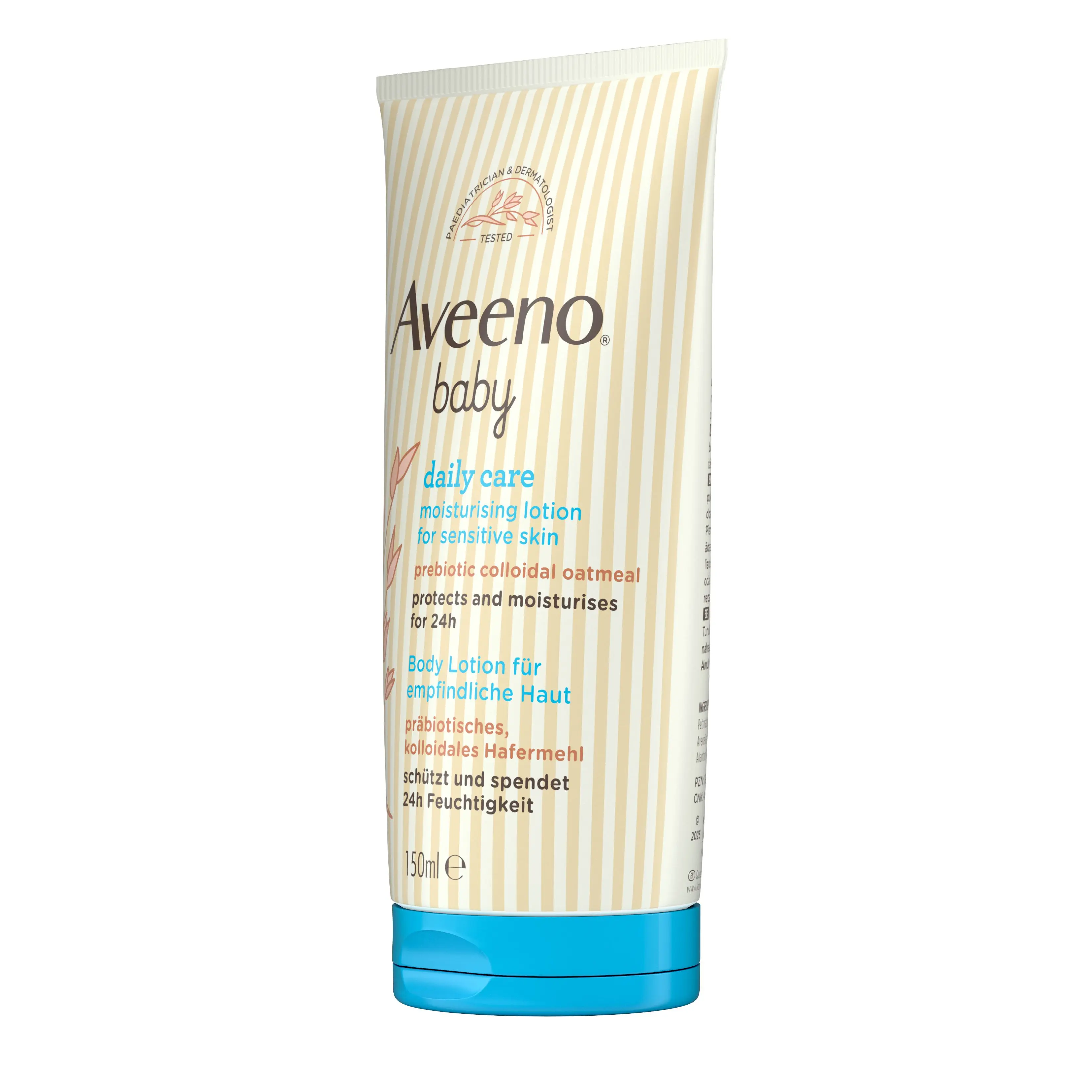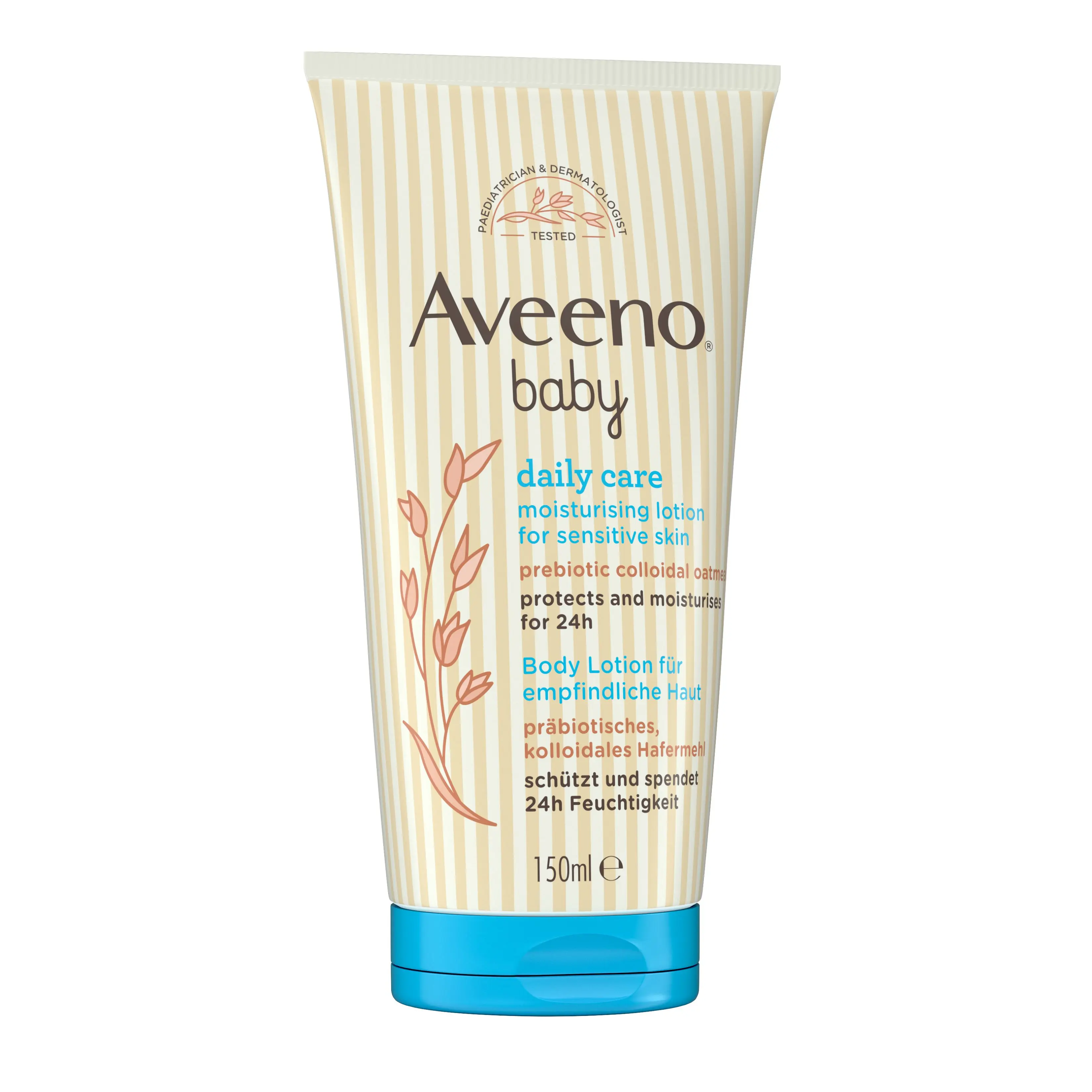 Die Aveeno® Baby Daily Care Body Lotion versorgt die Babyhaut klinisch erwiesen 24 Stunden lang mit Feuchtigkeit und schützt sie vor Hauttrockenheit. Die Feuchtigkeitspflege ist geeignet für Neugeborene sowie für Babys und Kinder mit zu Ekzemen neigender Haut.