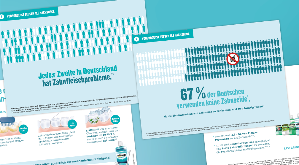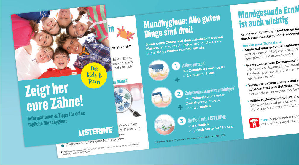 Sie möchten Ihre Kund:innen im Bereich Mundgesundheit bestmöglich informieren – und wir Sie. Deshalb stellen wir Ihnen hier alle wichtigen Materialien zu unseren Produkten von LISTERINE® zum Download bereit.
