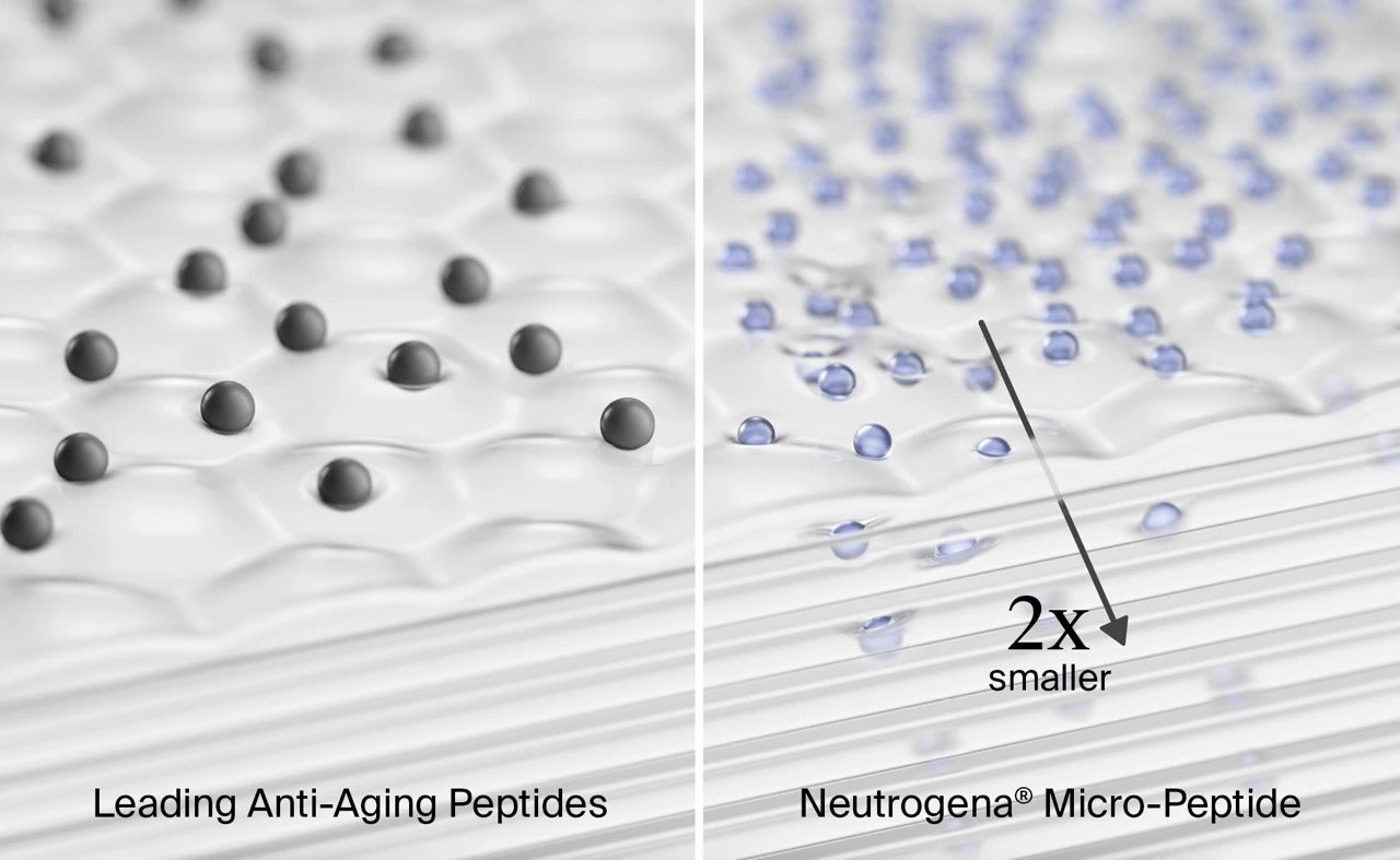 Our patented micro-peptide technology is 2x smaller vs. leading anti-aging peptides to absorb through 10 of the skin's surface layers for visibly plump and glowing skin