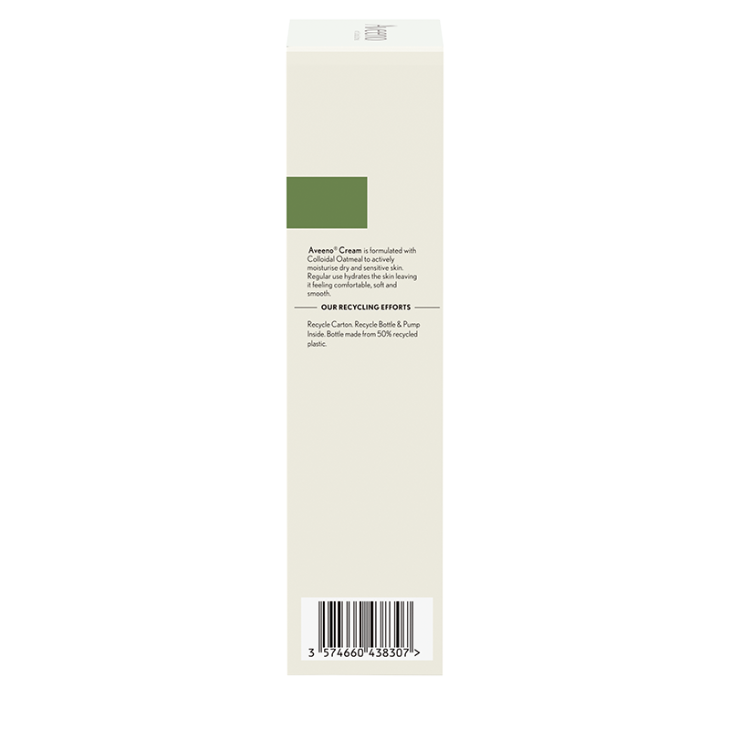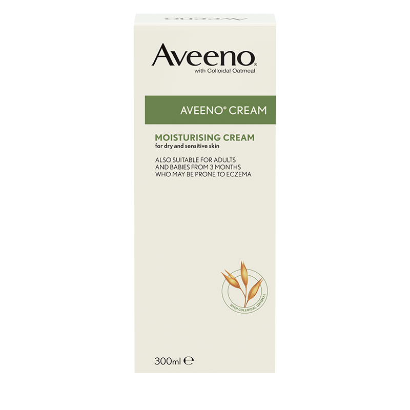 Aveeno® Cream with colloidal oatmeal actively moisturises dry and sensitive skin.