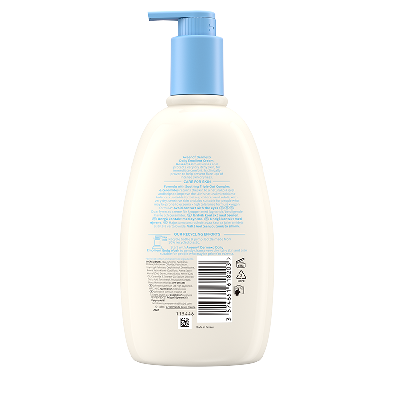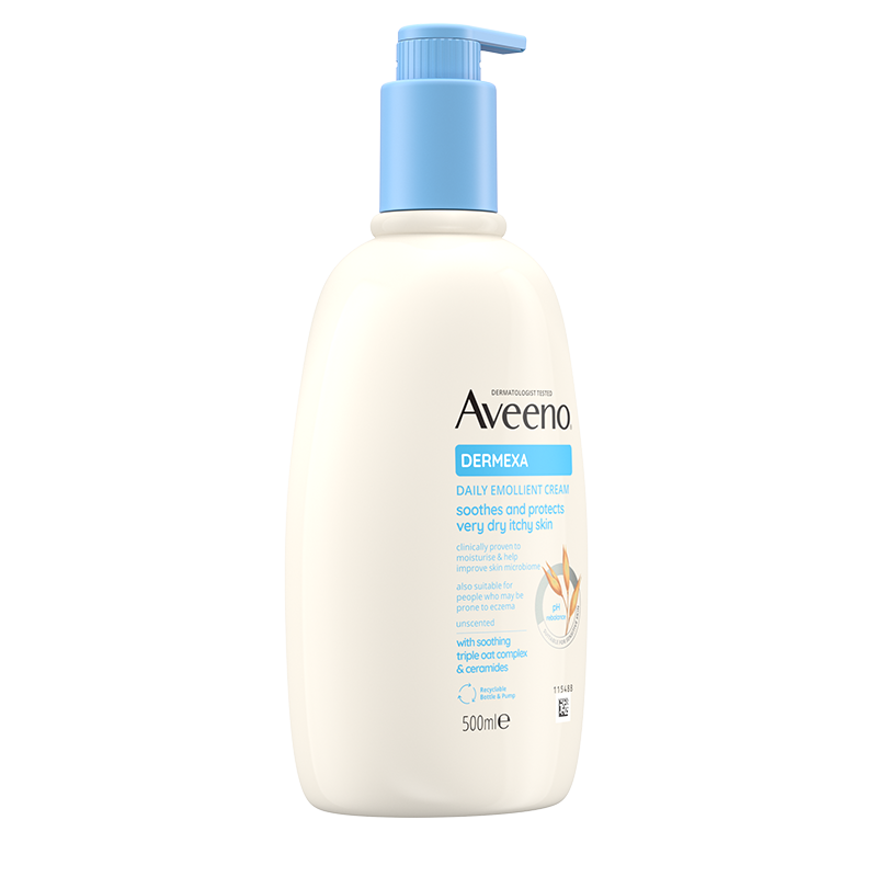 AVEENO® Dermexa Daily Emollient Cream has a non-greasy, vegan* formula that combines a soothing triple oat complex and ceramides and which soothes & protects very dry itchy skin, whilst helping to strengthen the skin's natural barrier.