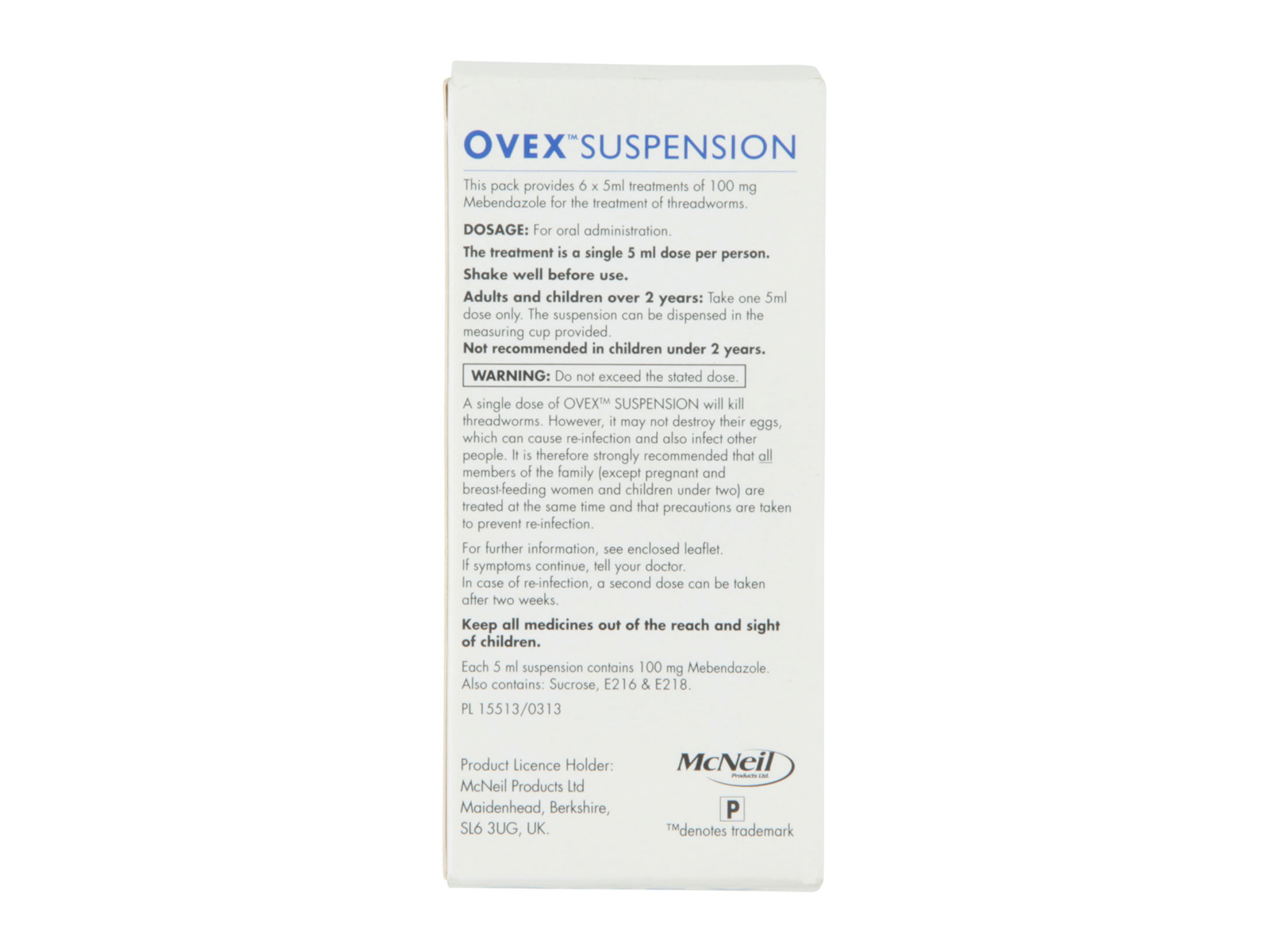 Ovex is a medicine which is used to treat threadworm (sometimes known as pinworm) infections of the gut. The tablets contain mebendazole, which is one of a group of medicines called ‘anthelmintics’.