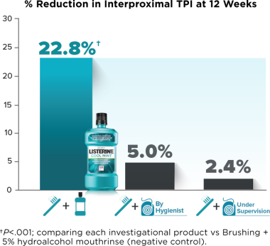 LISTERINE® Antiseptic, hygienist-performed flossing, and hygienist-supervised flossing all statistically significantly reduced interproximal bleeding at Week 12 compared to negative-control mouthrinse