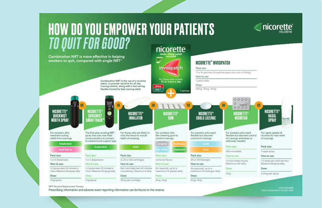 NICORETTE® (nicotine) offers a wide range of formats to help tailor the NRT to suit the patient