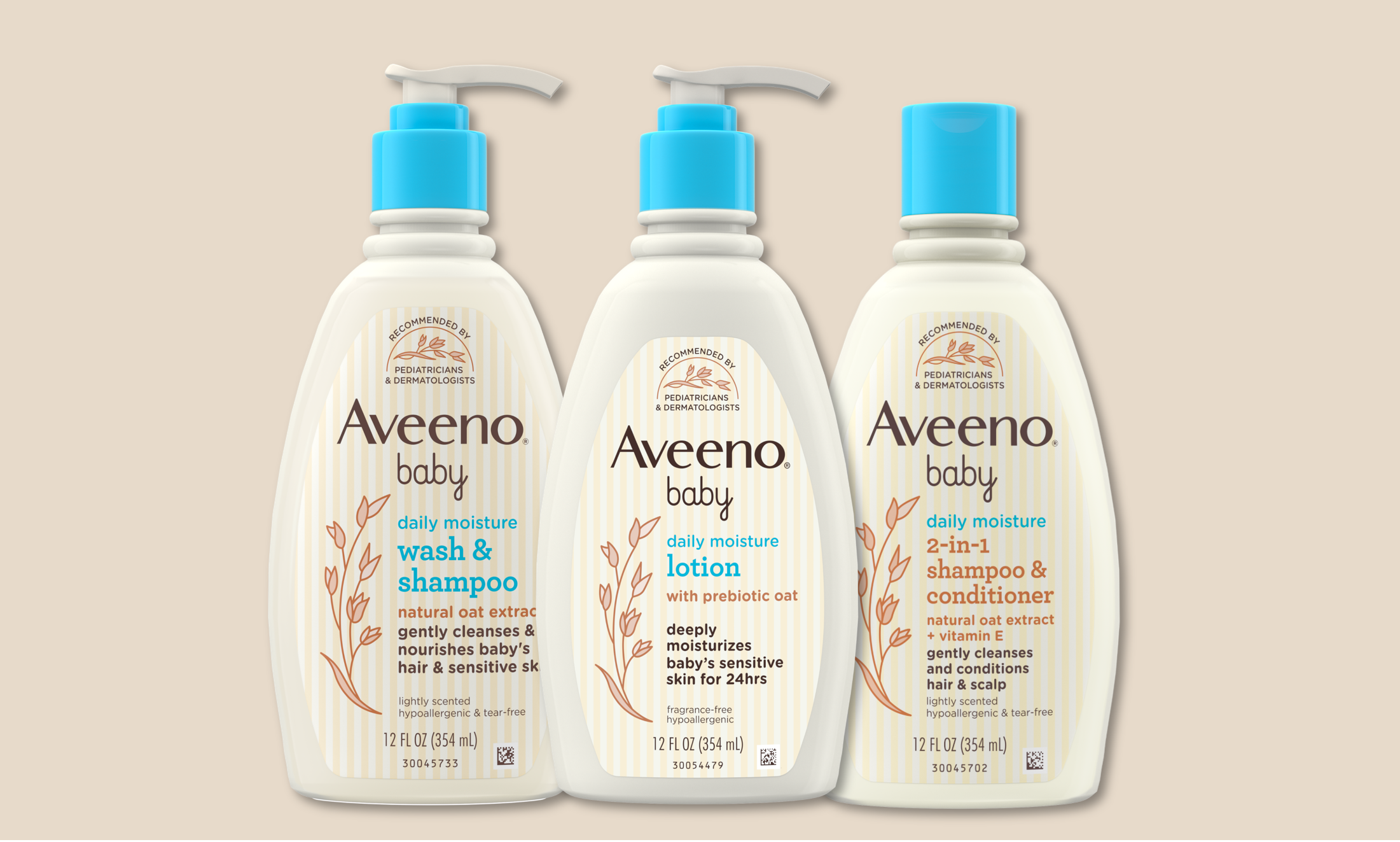 Only Aveeno Baby® offers a globally recognized portfolio of oat formulations that deliver healing from probiotic cues on newborn skin and effective eczema relief. Aveeno Baby® products are specifically formulated with high‑quality oats to preserve their protective, moisturizing, and soothing properties.