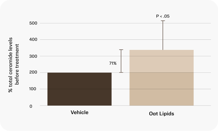Cells treated with oat oil for 7 days showed a 71% increase in total ceramide levels compared with vehicle control.