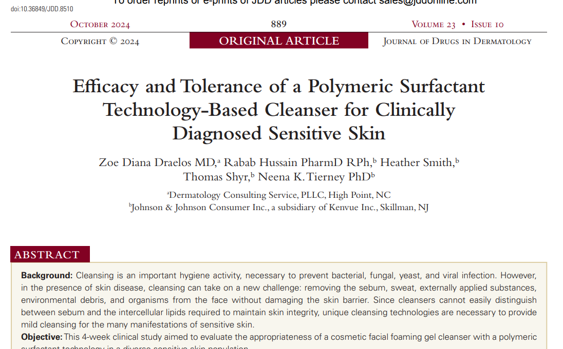 Journal of Drugs in Dermatology: Novel 2% Salicylic Acid Cleanser With Polymeric Cleansing Technology Treats Acne Without Compromising Skin Barrier