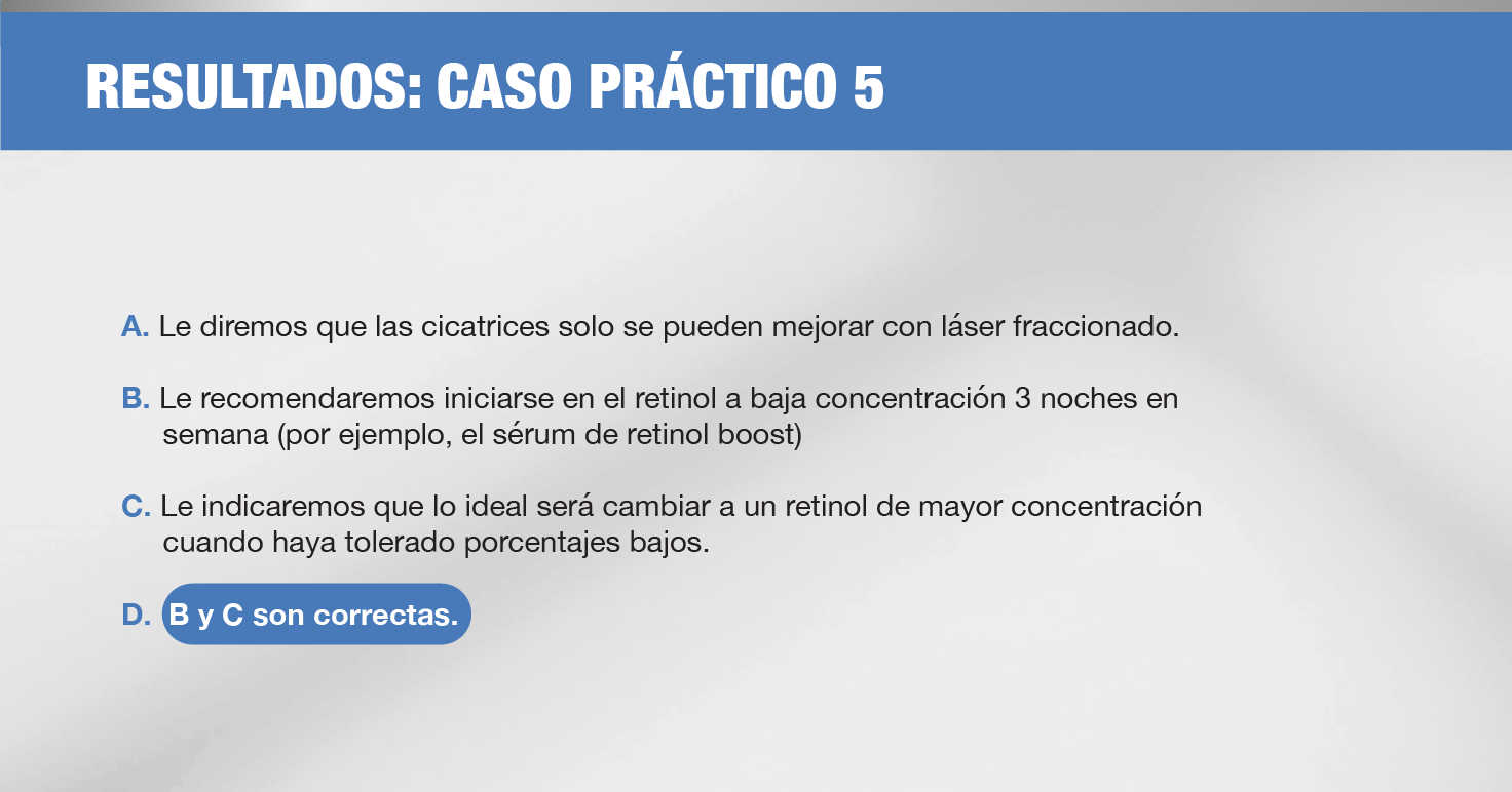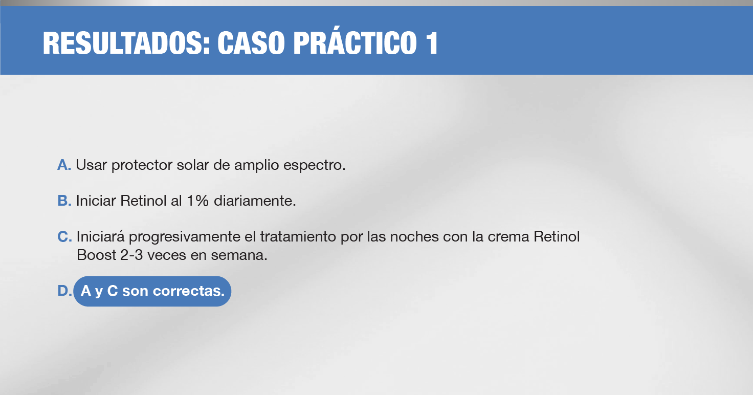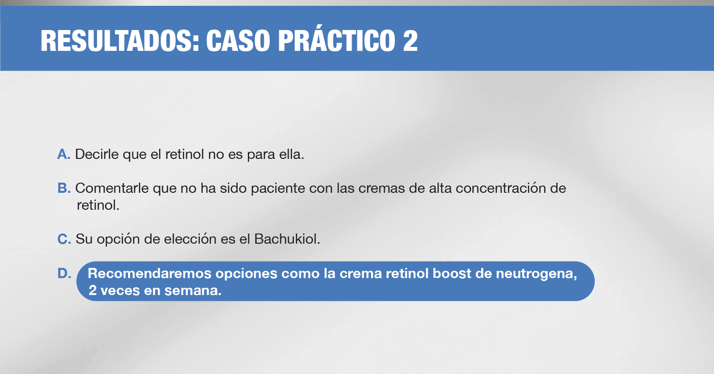 Le indicaremos que lo ideal será cambiar a un retinol de mayor concentración cuando haya tolerado porcentajes bajos.