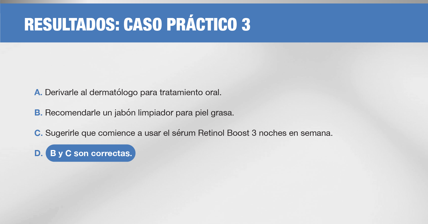 Sugerirle que comience a usar el sérum Retinol Boost 3 noches en semana.