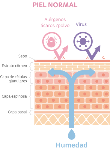 La barrera cutánea o microbioma de la piel está localizada en el área más superficial de la epidermis denominada estrato córneo. Sus componentes (queratinocitos y moléculas de la proteína filagrina) son los encargados de conferir un factor de humectación natural y un pH adecuado que la mantiene íntegra.