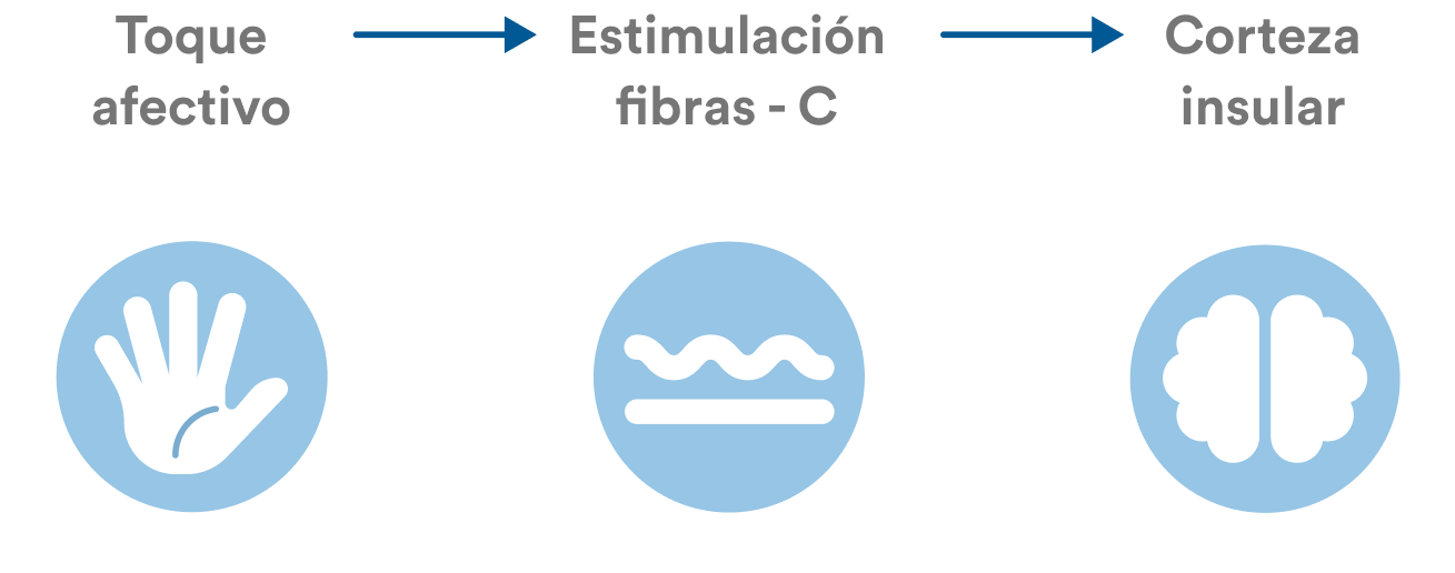 Por ejemplo, el toque afectivo y las caricias delicadas y emotivas estimulan las fibras C-táctiles en la piel, muy importantes para la formación y el mantenimiento de las interacciones sociales(8).