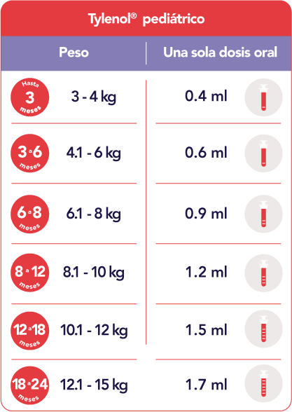 En pacientes menores de 6 meses14 se ha recomendado administrar paracetamol (previo ajuste de la dosis según el peso), para mejorar síntomas como dolor, malestar general o cuando la temperatura sea mayor a 38.5 ºC.10