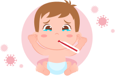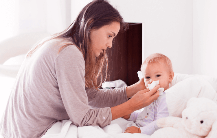 De hecho, durante una fase epidémica de influenza el cuadro clínico más común en los pacientes es fiebre, tos y rinorrea. En bebés puede darse comúnmente incluso fiebre asociada a algunos síntomas inespecíficos como diarrea o vómito.23