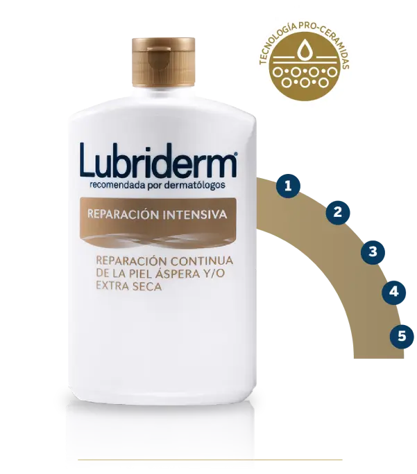 Está enriquecida con un complejo multimineral (zinc, magnesio y cobre) que aumenta el metabolismo celular y la renovación celular, para otorgar una piel más tonificada y saludable.4,5 El uso de Lubriderm® Reparación Intensiva con tecnología ProcCeramidas ha demostrado:1,2,6-8