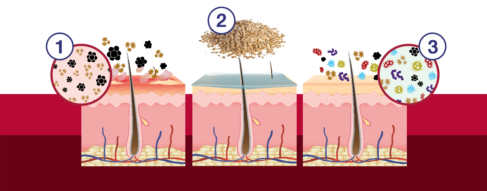 A principal particularidade da aveia prebiótica é o fortalecimento e a reparação da microbiota da pele², deixando-a equilibrada e aliviando os sintomas da pele atópica, como a vermelhidão associada à pele sensível.4,5