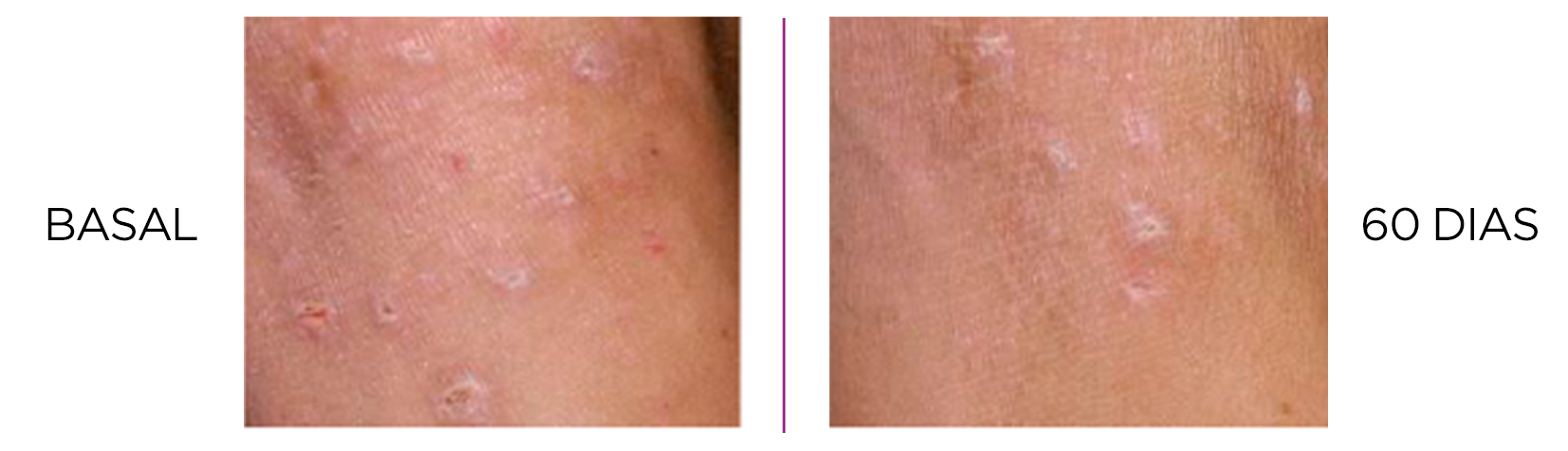 Em uma avaliação clínica, foi identificado que, após 60 dias, houve um aumento de 79% no nível de hidratação20 das áreas da pele atópica*, quando comparado com o nível inicial.