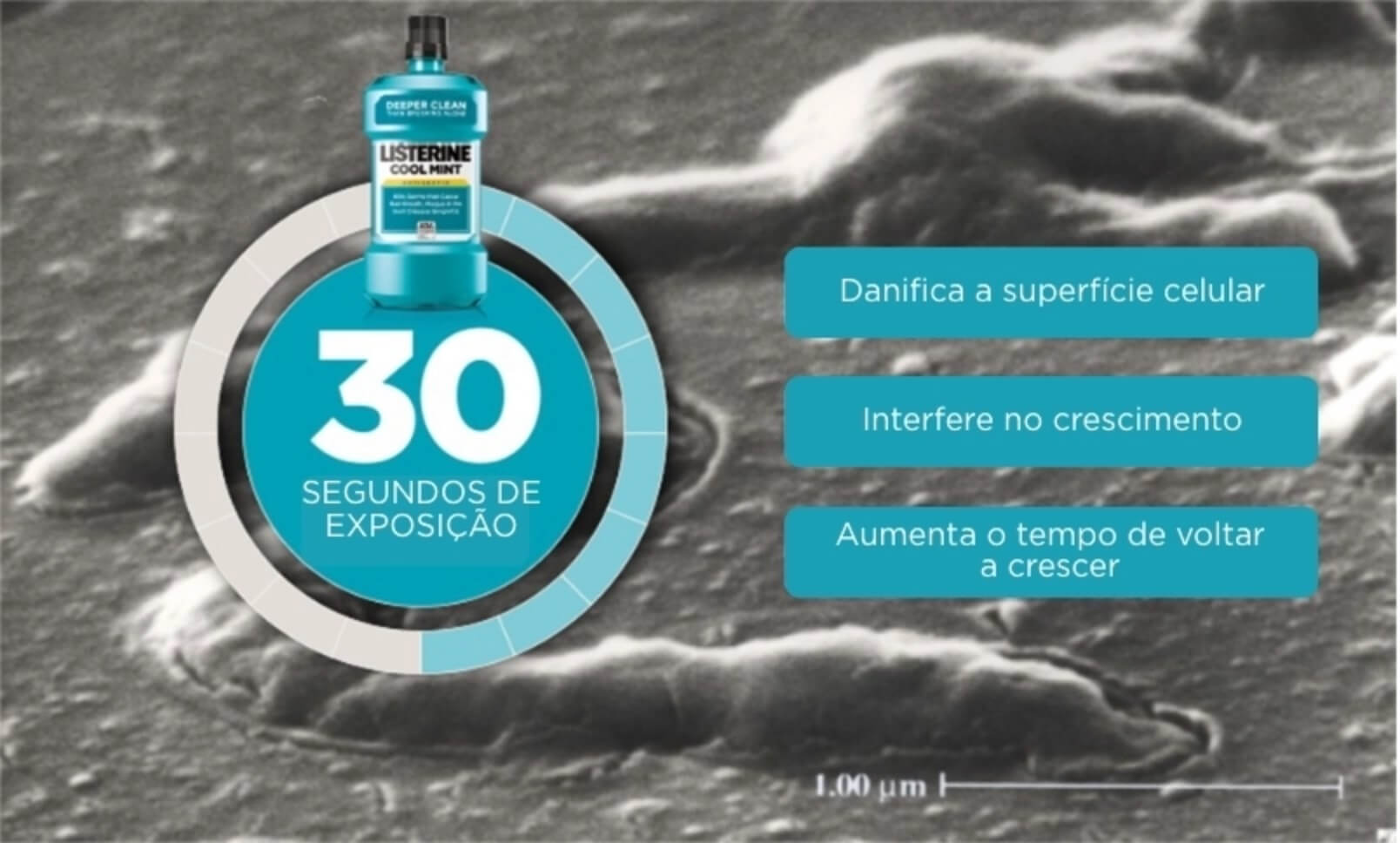 Em apenas 30 segundos de um enxágue com força total, a poderosa tecnologia por trás do Antisséptico LISTERINE® danifica a superfície celular das bactérias, interfere no crescimento e aumenta a quantidade de tempo que as bactérias levam para voltarem a crescer,1-7 bem como rende uma maior eliminação das bactérias e maior redução da placa. 8**