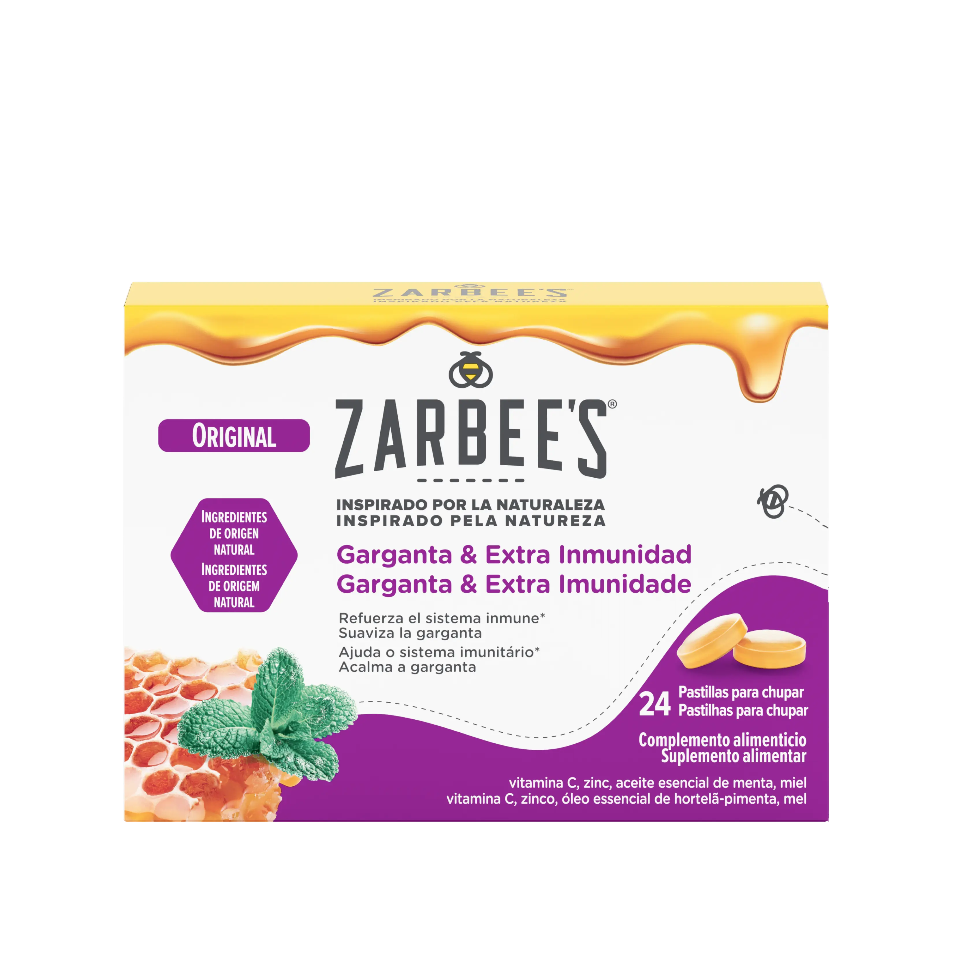 Zarbee’s® pastilhas para chupar Garganta & Extra Imunidade, Sabor Original (Menta)