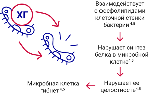 Активные вещества метронидазола бензоат и хлоргексидина диглюконат в составе Метрогил Дента® — оптимальная комбинация: антибиотик и антисептик4,5: