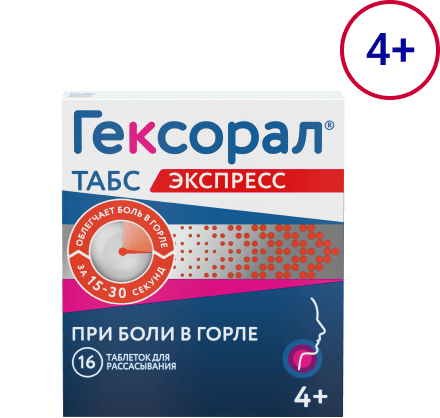 Согласно инструкции по медицинскому применению лекарственного препарата Гексорал® табс экспресс рег. ном. ЛСР-002626/07 от 14.03.2008.