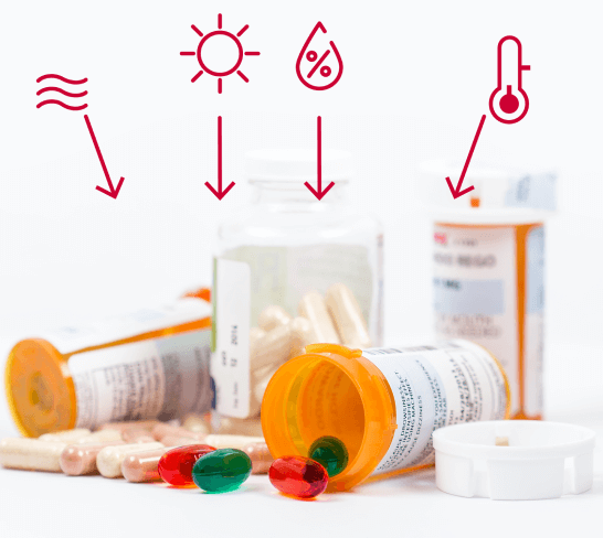 Воздействие воздуха, света, повышенной влажности, низких или высоких температур приводит к деградации активных фармацевтических субстанций4.