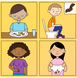 Педиатры из США для помощи родителям в лечении функционального запора у детей предложили использование персонализированного плана действий по борьбе с запорами на основе пиктограмм. Понятный и легкий в восприятии материал по принципу светофора отражает разные состояния ребенка. Врач при передаче данного плана родителям отмечает в нем, какую терапию необходимо использовать в разных случаях и режим ее приема. Исследователи также отмечают, что использование подхода, основанного на санитарной грамотности, облегчает лечение функционального запора5.