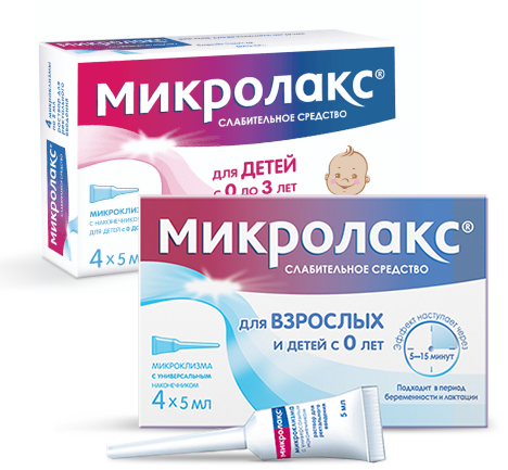 Микролакс® — первый этап терапии каждого эпизода запора (при наличии каловой пробки)4,6