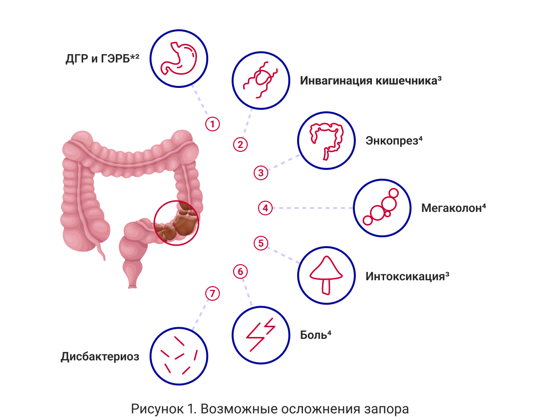 При этом, развитие осложнений функционального запора (рис. 1), таких как энкопрез, может привести к социальной дезадаптации ребенка1, усугубляя психологические проблемы и замыкая, таким образом, порочный круг.