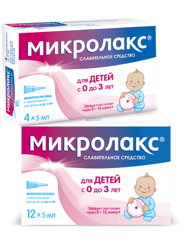 Отличительная особенность микроклизм Микролакс® — благоприятный профиль безопасности. Компоненты препарата действуют только в просвете кишечника, благодаря чему практически отсутствуют системные нежелательные явления. Микроклизмы Микролакс® разрешены к применению у детей с рождения4.