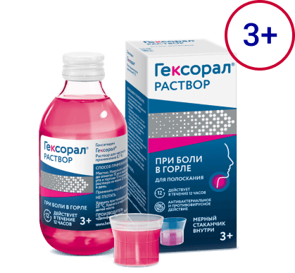 Согласно инструкции по медицинскому применению лекарственного препарата Гексорал® раствор. Рег. номер: П N014010/02.